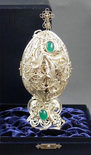 А вот что находится внутри оболочки, опирающейся на слонов? 80% изготовленных яиц предназначались для российского императорского дома и
