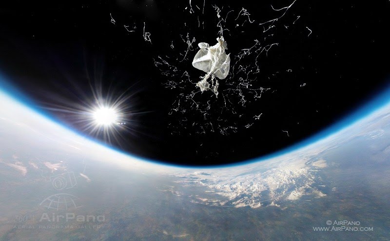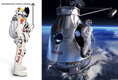 поднявшись вверх. В начале прыжка видно, что это атмосфера земли. Но кадр зафиксирован, когда Феликс еще лишь готовится к прыжку: