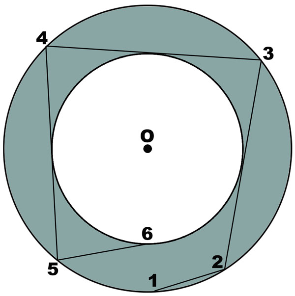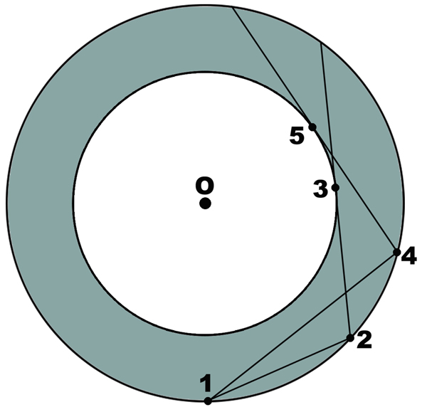 На рисунке изображена траектория луча, финиширующего в точке 6