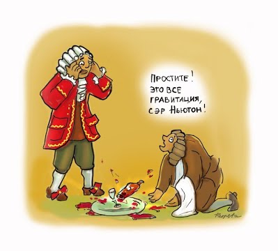 удается. Никак! Ну, не притягивается ничто ни к чему! Чего только не придумывают, чтобы объяснить её отсутствие: и эфир, и кривизну пространства, и всемирное отталкивание. Но мы знаем правильное объяснение: внутри полой сферы гравитации нет. Притяжение одного сектора поверхности компенсируется притяжением противоположного сектора. Именно центробежная сила заставляет падать яблоко и прижимает нас к земле. Как видите, вода из бутылки льется так же, как и в собственной квартире, хотя квартира у летчика над головой: Но мы знаем, что центробежная сила пропорциональна радиусу вращения. И на