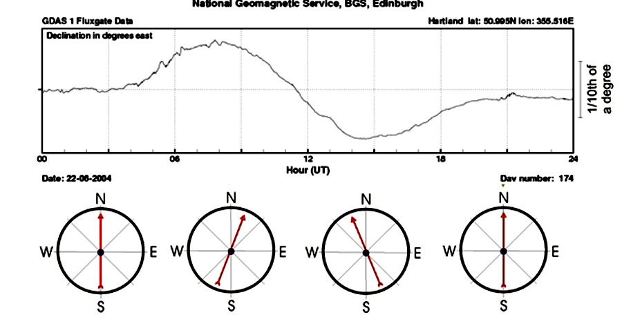 градусов. Показания усредняют и получают дрейф магнитного полюса. Случайный.