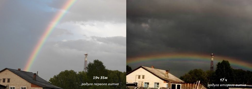 оценить расстояние между двумя витками: 7.5 км. Одинокая радуга меньшего размера, так как