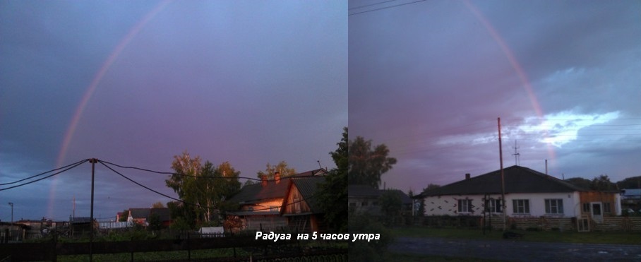 На левом снимке радуга достаточно далеко от дома. И мы четко видим тень от трубы