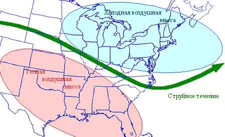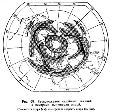 меньше, чем у поверхности. Есть и воздушные струйные течение: И они текут с Запада на Восток с наклоном в сторону Экватора. Скорость течений