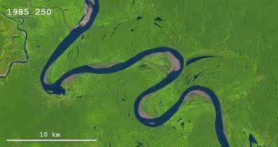 спутниковых снимков реки Ucayali в Перу с 1985 по 2013 год.