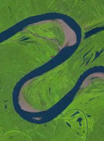 Прекрасная иллюстрация к воздействию силы Кориолиса на речные