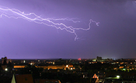 кадров в секунду): Сначала короткие молнии расходятся веером из центра тучи. Но заряд молний