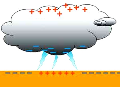 воздуха. Молния мгновенно собирает заряд со всех заряженных частиц тучи и переносит его на землю.