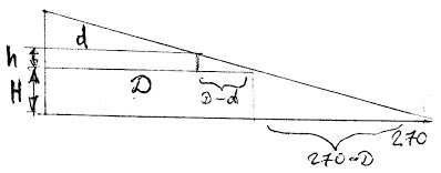 h/H=(D-d)/(270-D) рис. 2 203 км - смещение Луны за время затмения