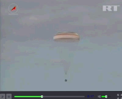 купола? Этот эффект может возникнуть, лишь если натяжение строп недостаточно, т.е. вес и скорость СА малы. Вот как в момент приземления, когда СА уже на земле, а купол еще движется: Но всё же это не является доказательством спускаемой бутафории,
