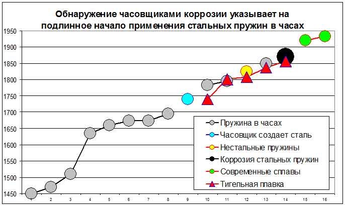 4.Б. Отсутствием спешки с ловлей блох 4.В. Методом обратной логики Это мощнейший инструмент анализа событий, совершенно не знакомый среднестатистическому гражданину. Миру представил его Шерлок Холмс: "Почему собака не лаяла? А не было собаки!". Т.е. выводы делаются не по событию, а потому, что событие не произошло. Сами понимаете, это намного более трудная задача, так как нафантазировать неслучившихся событий можно множество. Да и как формализовать то, чего нет (ох, непросты русские сказки: «Поди туда - не знаю куда, принеси то - не знаю что»)? Это динамический метод, а не статический. Поэтому этот метод и доступен лишь мастеру. И вот маленький пример, как мастер Степаненко его применяет (по горизонтали у него всегда количество упоминаний - совершенно непривычный вид для гистограмм, но очень удобный для анализа поведения кривых, именно это и указывает на гения - умение посмотреть под другим углом): Таким образом Степаненко переносит дату применения стальных пружин с середины 18-го века в конец 19-го: раз не обращали внимания на коррозию, значит, и не было стальных пружин. Чем не Шерлок Холмс?! "Ну что за ерунда?" - можно повторить за критиком из ролика доклада. Да, для любителя (а не мастера) это ерунда. Но Холмс не заканчивал на этом расследование преступления, а использовал сформулированный ответ как вектор поиска преступника. Так и здесь. Перенос еще ни о чем не говорит. Но когда представительная выборка подобных переносов образуют устойчивый кластер, где все события сцепляются в единую причинно-следственную цепь, то тогда и создается новая картина мира. Это как отдельные мазки пуантистов вдруг оживают в единую картину, стоит отойти от полотна на несколько метров. Вот и у меня уже сформировалась единая картина истории нашего мира, с которой я и познакомлю читателей. Как Вы и сами понимаете, доказательная база неподъемна. Фоменко уже сорок лет пытается выстроить свою картину, но еще далек до завершения. Поэтому я и не буду пытаться что-либо доказывать. А буду лишь иногда ссылаться на фрагменты работ указанных мною исследователей. Чтобы понять, как я создал своё видение, надо повторить путь за мной, начиная с Гумилёва (я прочитал почти все его работы). Вам будет проще, так как Вы будете смотреть на всё под ракурсом моей исторической модели. И у Вас есть возможность на отвлекаться на сотни тысяч работ других исследователей, как это делал я, пытаясь нарыть у них жемчужин. (Но Степаненко надо прочитать всего!) Мой дайджест практически полон (я еще буду давать ссылки на другие интересные исследования). Наши цели ясны, задачи определены. За работу, товарищи! Заключительные слова выступления Н.Хрущева на 22-м съезде КПСС Подстраницы (7): 2.1 Что происходит с историей? 2.2 Аттрактор 2.3 Великий Потоп 2.4 Допотопные времена 2.5 XIX век 2.6 XX век 2.7 1932-1947 |