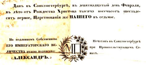 И здесь есть интересное совпадение: манифест Александра вышел 19 февраля 1861, а