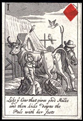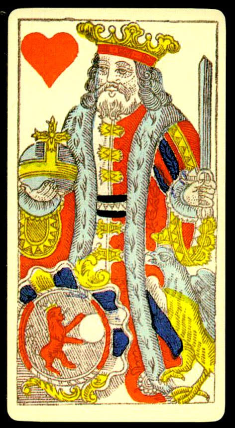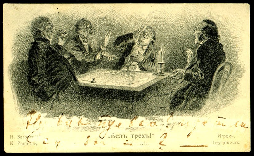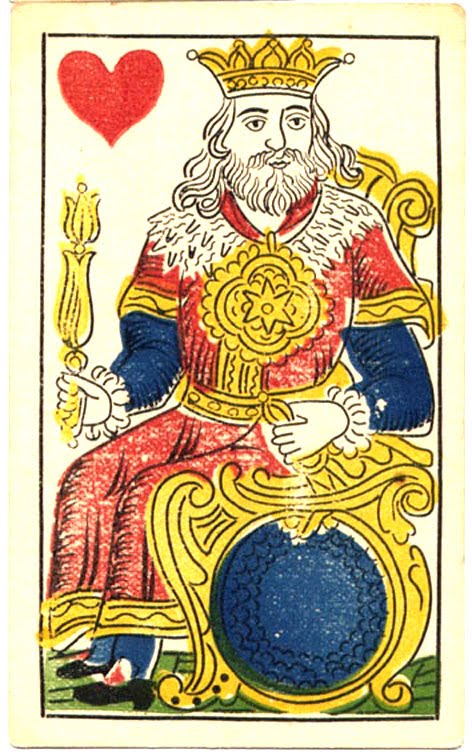 мастера, утерянный после его смерти. Ну, а что же наша Александровская мануфактура с её 1817 годом? Понятно, что. Её история игральных карт связана с Крымской войной. Бавария направила в армию Наполеона ограниченный контингент войск. В которую завербовался Каэтан Гёбл - известный производитель карт из Мюнхена. Официально он пропал в России в 1812, а фирмой руководила его вдова. Реконструкция говорит о 1855. (Что он забыл в России в 1812, имея собственную процветающую фабрику? А вот если она прогорела и закрылась еще в 1844, то он просто использовал шанс.) После войны почти все баварцы осели в Крыму и Причерноморье (на новых землях). Вот этот Гёбл и надоумил Александра открыть карточную фабрику. И Александровская мануфактура (второго, а не первого!) и была открыта в 1860 году. Не перестроена, как гласит официальная история, а построена (печатную фабрику переформатировали в карточную - можно назвать перестройкой). А Гёбл вошел в нашу историю как мастер Винкельман, возглавивший производство карт (это явно прозвище: Гёбл ввел обрез углов карт, до этого они печатались прямоугольными). И первыми изделиями были колоды именно Гёбла (скорее всего, он даже захватил с собой старые формы в надежде окучить новый рынок): Для новых граждан