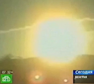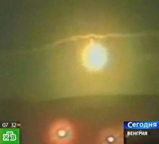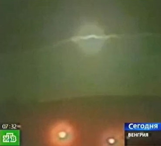 земли. Светящийся шар возникает внезапно, виден слабый хвостик, перед землей резко расширяется, причем, это не взрыв - центр вспышки существенно выше уровня земли, затем шар резко сужается (весьма странно для взрыва) вплоть до пятнышка уже на уровне земли. Вспышка - выброс плазмы при торможении. На высоте 10 км, менее, чем за секунду, не может возникнуть такой огромный шар от трения о воздух. Это ничто иное, как посадка транспортного модуля. Далее он может
