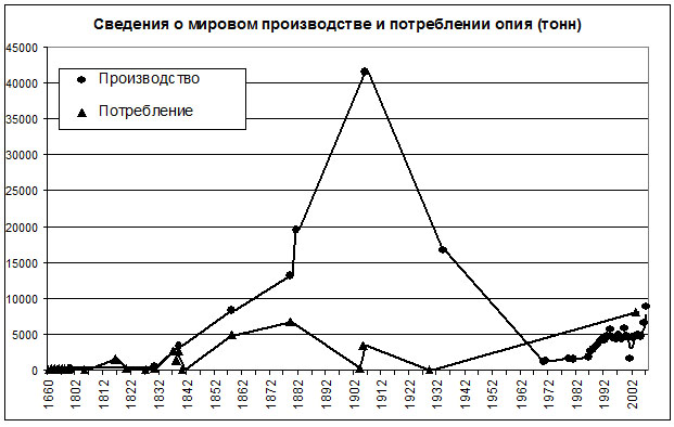 Интереснейший график для другого наркотика: Производство нарастало прямо с конца периода изоляции и достигло максимума к