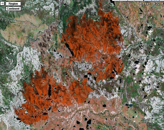 просматривались горы без снега): Таких закрытых мест было множество. А вот в глухой Сибири поленились закрыть: Сейчас уже нет сомнения, что это за пятна. Такими покрылась бы вся земля,