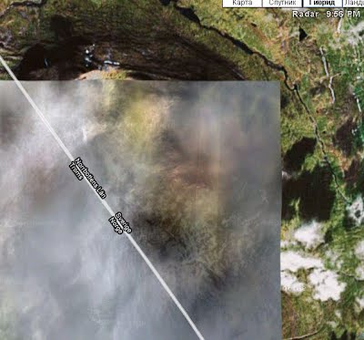 Взрыв кометы Холмса явился определяющим для всей нашей жизни с 2008 года. К весне 2008 радиоактивные осадки и обломки достигли поверхности земли. Из форума: Знакомый лётчик из гражданской авиации сказал, что на высотах от 9000 км повышенное рентгеновское излучение. Если раньше, когда они в нарушении всех норм гражданских перевозок летали в США и обратно в Россию через Северный полюс и за один перелёт получали 5 БЭР дозы, то теперь такая же картина и в нижних широтах. Это говорит о том, что "огонь" космоса приблизился к поверхности Земли. Многие типы недомоганий: быстрая усталость, неожиданное повышение температуры и спад её, блуждающие боли по скелету, печёночный выброс на поверхность кожи, головные боли и неожиданное повышение давления и т.д. и т.п. Также отмечалось, что на эшелонах пассажирских самолетов стало теплее: периодически воздух прогревается до -35С при норме -55. Бытует мнение, что алкоголь защищает от радиации. И летчики стали напиваться. Американский пилот, напившись в Лондоне, забыл маршрут: http://www.newsru.com/world/09nov2010/laperl.html Пограничники в аэропорту Варшавы задержали пьяного американского пилота: http://www.newsru.com/world/13aug2010/warsaw.html Рейс Симферополь-Киев сорвал "в стельку пьяный" экипаж: http://www.newsru.com/world/10mar2010/plane2.html Во Франкфурте нетрезвого пилота российской S7 отстранили от рейса: http://www.newsru.com/world/11oct2009/s7.html Репрессии не помогли, и на всех самолетах демонтировали счетчики Гейгера, чтобы они психически не давили на летчиков. С конца марта начались частые авиакатастрофы. В основном - военных самолетов, летающих по более высоким коридорам. А с мая повсеместно появились химиотрассы: На первый взгляд, это обычные инверсионные следы самолетов. Но эти следы не рассеиваются за десяток-другой минут, а расползаются в широкие слоистые ленты и смыкаются друг с другом, образуя серый экран на всё небо. Обычно хватает пары часов, чтобы ясное небо закрыть тучами. Чтобы приручить население, сначала летали самолеты, оборудованные распылителями, их фото были вброшены в интернет. Но такие полеты требовали большого расхода керосина - случился даже кризис в разгар туристического сезона: аэропорты были забиты пассажирами, и Путин обещал разобраться лично. Затем самолеты заменили трассоукладчиками (шаттлами зевсов), летающими под голограммой самолета. Я сам наблюдал, как подобный объект остановил трассу, пролетел еще немного, резко свернул под 90 градусов и опять включил трассу. В безлюдных и малонаселенных районах поверхность выглядела так (граница Норвегии и Швеции): Гугл эту местность вообще закрыл от греха подальше (кстати,