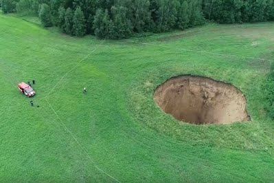 Мы рассмотрели разнообразные последствия взрыва кометы Холмса. Если это не происки Управляющих, то результат обстрела нашего звездолета. Мы уже знаем, что землетрясения - это последствия ударов по корпусу. Но для повреждения на ЗС нужны какие-то особые снаряды. Я не знаю, что они из себя представляют, могу лишь сказать, что это какие-то компактные волновые пакеты, свободно проникающие через оболочку звездолета. Для определенности, я их называю "магнитные солитоны". И мы можем наблюдать последствия прохождения такими солитонами границы двух сред (земли и воздуха): на границе происходит потеря энергии, испаряющей всё внутри пузыря диаметром 30 метров и глубиной от 30 до 150 метров в зависимости от грунта. Это калибр данного снаряда. Поэтому характерные провалы, возникающие по всей Земле имеют именно такой диаметр. Провалы в Китае и Южной Америке в конце мая 2008.