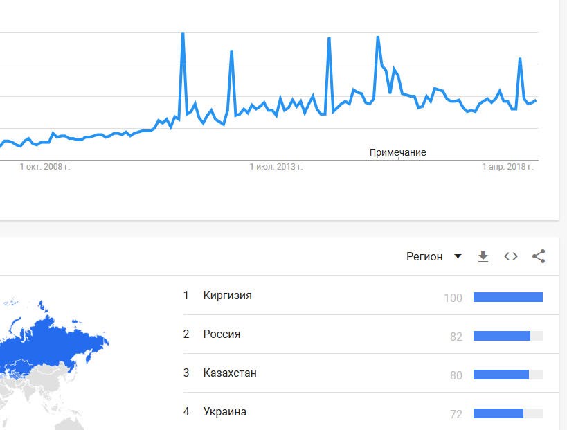 Первое место занимает не Россия, а маленькая Киргизия! Это