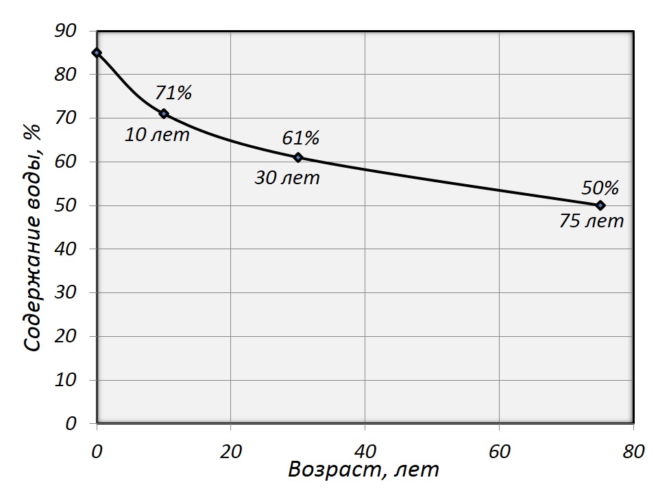 Корреляция наблюдается: потеря воды в 10% за 20 лет ведет к