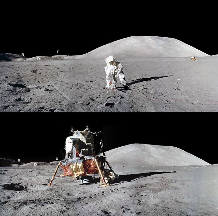 Хороший анализ фотографий на сайте (файл "prebyvaniya-amerikantsev-lune" в архиве). А также множество других убедительных статей в архиве false (73 Mb). Интересно, что документация на американскую лунную ракету Сатурн-5 была утеряна (а документация на советскую лунную ракету Н-1 была уничтожена после закрытия проекта - сожжена). И всё тот же главный вопрос: борьба с радиацией. Радиационный пояс Земли охватывает всего 25 000 км. А в скафандрах нет радиационной защиты! Лучшим форумом по лунной фальсификации я считаю "Лунную аферу" на "Большом Форуме" Фото выше - оттуда. Фото хорошо иллюстрируют тезис о картинах на стенах павильона. На этом форуме собрались дотошные ребята, проводящие тщательный поиск информации по любому вопросу (особо мне понравился подсчет количества солнечных вспышек за время полета и оценка дозы радиации, полученной астронавтами - лучевая болезнь неминуема). Из форумов: