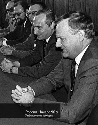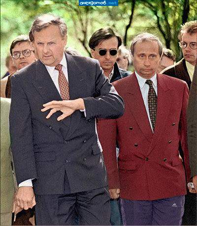 | Путин у Собчака: с бодуна, чужой пиджак одет на спортивные "треники" | С бодуна, говорят вражьи голоса, обычное состояние: | Путин у Ельцина: всё тот же пофигизм во взгляде |