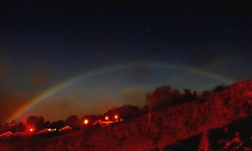 И уж совсем весело смотрится ночная радуга (Луна за спиной фотографа, выдержка 30 секунд). Пишут - явление объяснимое.